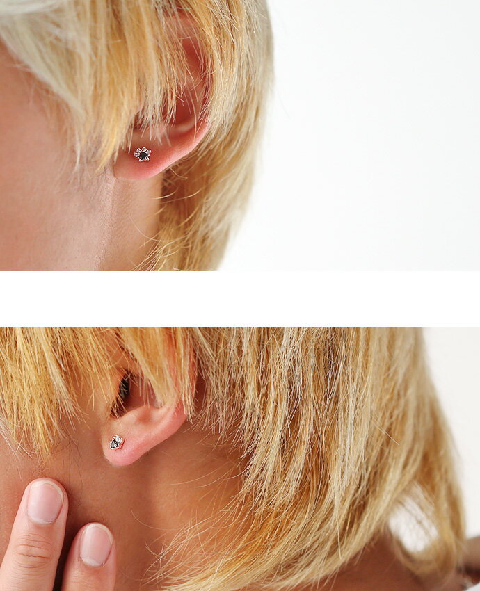 素材シルバー925、ジルコニア サイズ縦:約5.4mm、横:約6mm、厚み:約3mm ポスト:20ゲージ(約0.8mm)、長さ約9mm 重量:約0.5g 注意点※片耳用(1個売り)となります。